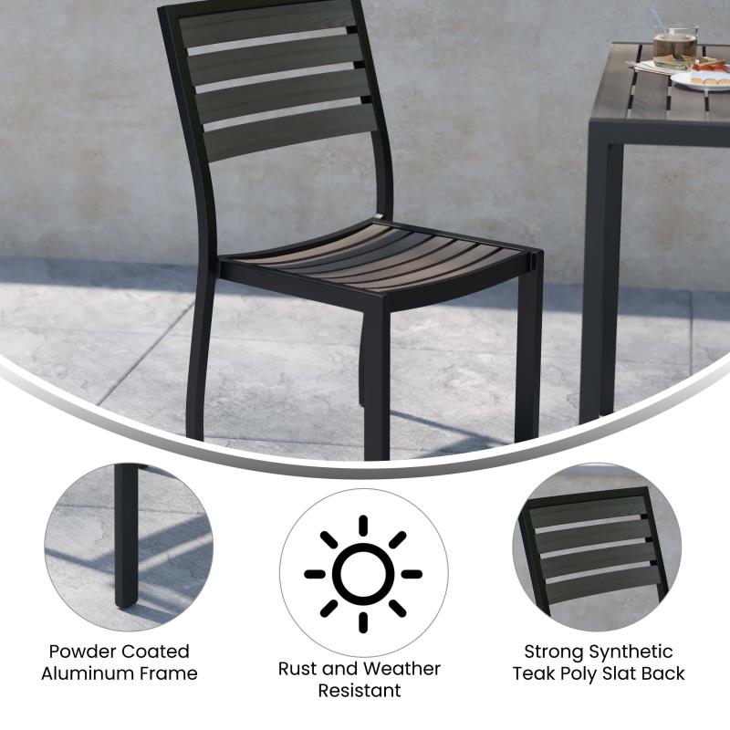 Complete the look with our outdoor patio bistro dining table with faux teak poly slats